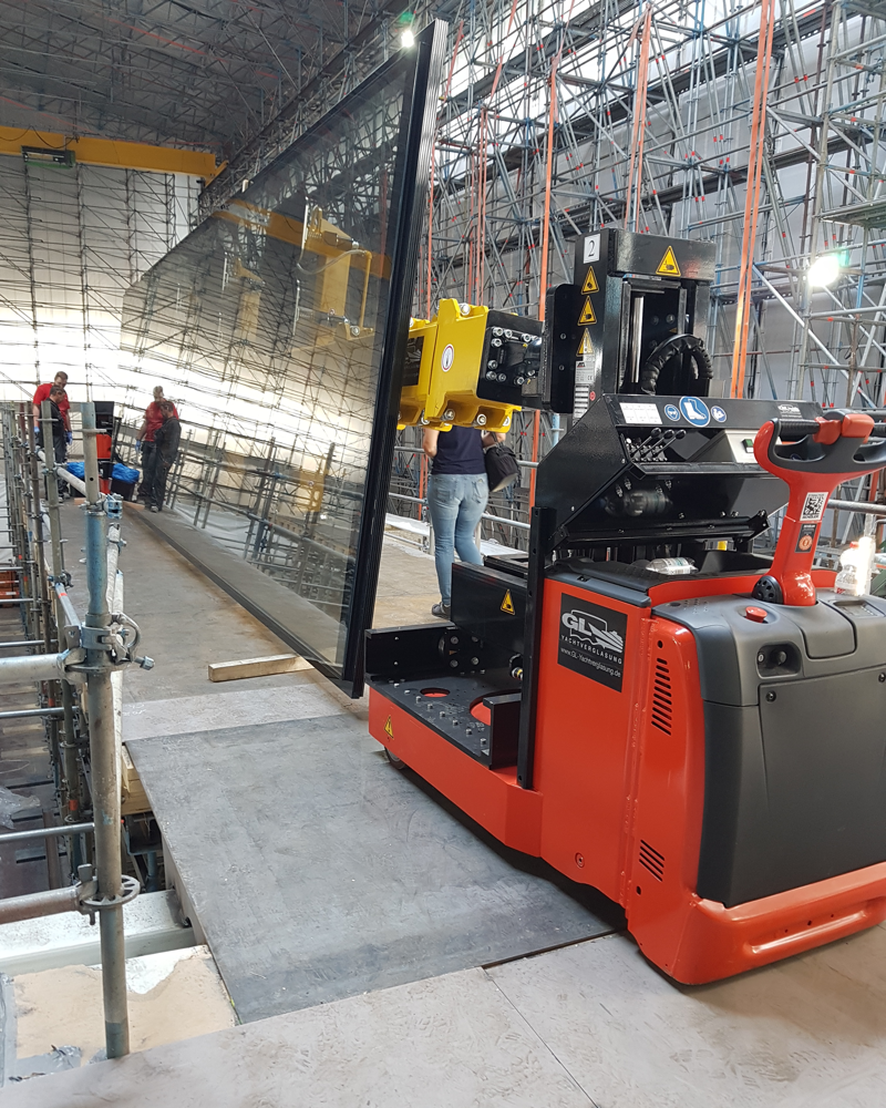 Auch bei diesem großen Projekt stand Sicherheit und Perfektion an erster Stelle. Der Glasboy 5300 ist natürlich auch so konzipiert, daß auch kleine und mittlere Scheiben transportiert und eingesetzt werden können.